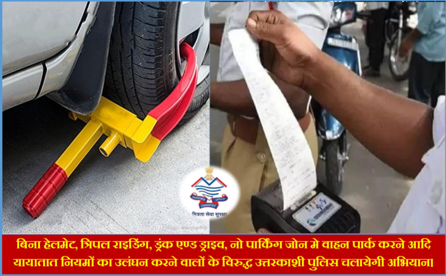 उत्तरकाशी | सरल एवं सुगम यातायात व्यवस्था तथा सडक दुर्घटनाओं पर नियंत्रण हेतु बिना हेलमेट, त्रिपल राईडिंग, रैश ड्राइविंग तथा…