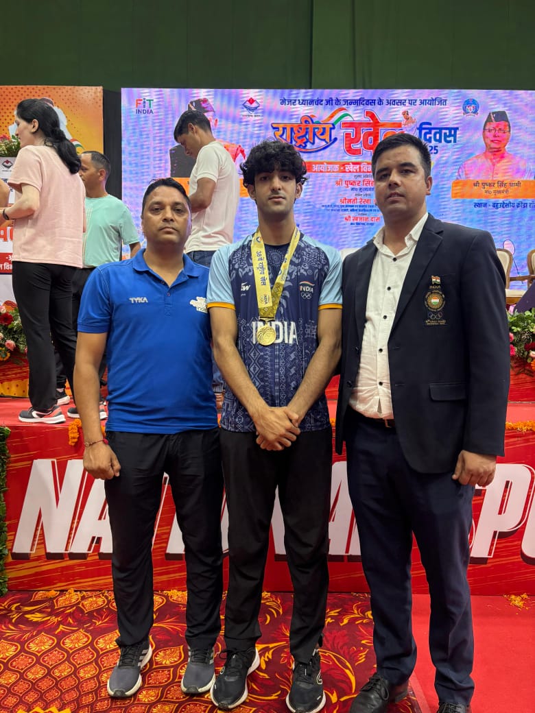 राष्ट्रीय खेल दिवस के उपलक्ष्य मे जनपद चम्पावत मे तैनात मुख्य आरक्षी मनीष सनवाल को किया सम्मानित |