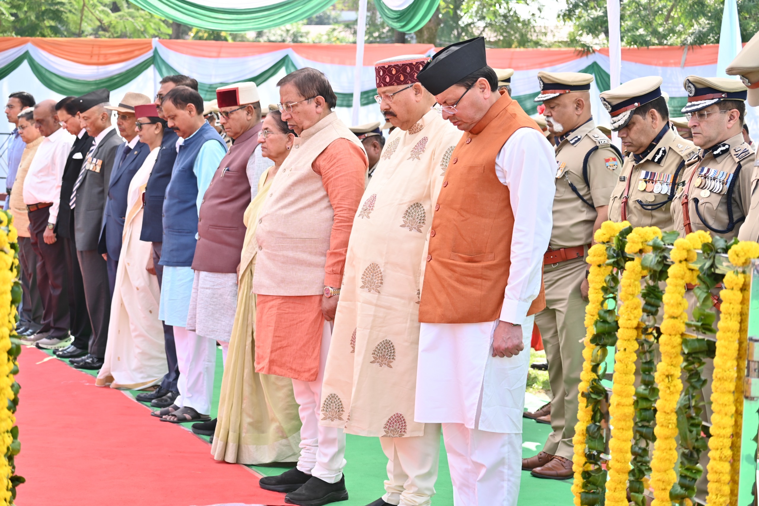देहरादून | पुलिस शहीद स्मृति दिवस के अवसर पर पुलिस लाईन देहरादून स्थित शहीद स्मारक स्थल पर श्रृद्धांजलि कार्यक्रम का आयोजन किया गया, जिसमें मुख्य अतिथि के रुप में माननीय मुख्यमंत्री उत्तराखण्ड पुष्कर सिंह धामी जी ने प्रतिभाग किया। इस अवसर पर माननीय मुख्यमंत्री, पुलिस महानिदेशक सहित उपस्थित गणमान्य अतिथियों एवं पुलिस अधिकारियों ने पुलिस एवं अर्द्ध सैनिक बलों के शहीदों को पुष्प चक्र अर्पित कर श्रद्धांजलि दी। माननीय मुख्यमंत्री जी द्वारा शहीद पुलिस कर्मियों के परिवारजनों को शॉल प्रदान कर सम्मानित भी किया गया ।