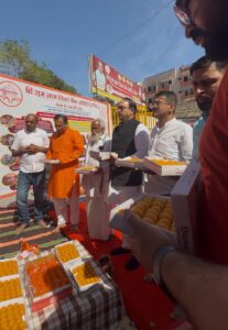 सुंदरकांड का पाठ कर 51 किलो लड्डुओं का भोग लगाकर मनाया हनुमान जन्मोत्सव ऊर्जा, शक्ति और विद्या का स्त्रोत है संकटमोचक हनुमान : सुमित तिवारी