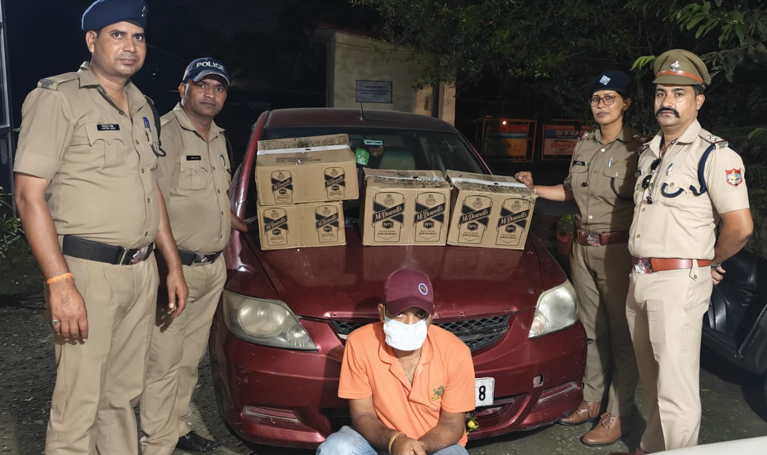 थानाध्यक्ष काठगोदाम पंकज जोशी के नेतृत्व में पुलिस टीम द्वारा चौकी मल्ला काठगोदाम गेट के पास चेकिंग के दौरान कैलाश चंद्र सुयाल पुत्र देवी दत्त सुयाल उम्र 38 वर्ष निवासी ग्राम सलड़ी अमृतपुर थाना भीमताल जिला नैनीताल के कब्जे से लाल रंग की होंडा सिटी कार संख्या UK07V 3008 में कुल 04 पेटियों में McD0WELS NO-01whisky के 24 बोतल 24 अद्दे व 48 पव्वे अंग्रेजी शराब बरामद कर गिरफ्तार किया गया उक्त सम्बन्ध में FIR N0- 87/25 धारा 60/72 Ex Act का अभियोग पंजीकृत किया गया ।