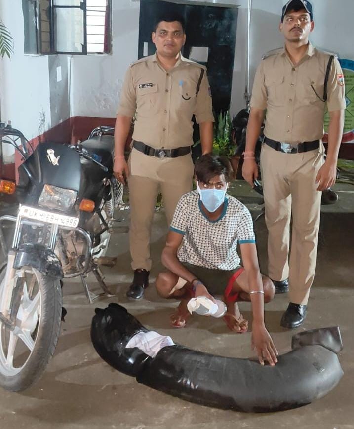 काठगोदाम पुलिस टीम द्वारा वन विभाग बैरियर से 1 किलोमीटर ऊपर हैड़ाखान रोड के पास चेकिंग के दौरान अभियुक्त नीरज सिंह पुत्र तुला सिंह निवासी मुरकुडिया हैडाखान काठगोदाम उम्र 30 वर्ष जिला नैनीताल के *कब्जे से