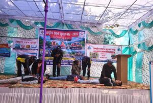 सड़क परिवहन एवं राजमार्ग मंत्रालय भारत सरकार के निर्देशानुसार यातायात दुर्घटनाओं में प्रभावी रोकथाम लगाने हेतु प्रदेश में 16 जनवरी से से सड़क सुरक्षा माह का आयोजन किया जा रहा है । एसएसपी नैनीताल डॉ0 मंजुनाथ टी0सी0* द्वारा सभी थाना/यातायात प्रभारियों को अपने–अपने क्षेत्र में यातायात जागरूकता कार्यक्रमों का आयोजन करने के सख्त निर्देश दिए गए है । उक्त अभियान के तहत डॉ0 जगदीश चन्द्र एसपी नैनीताल के पर्यवेक्षण में नैनीताल पुलिस द्वारा लगातार जागरूकता कार्यक्रम आयोजित किए जा रहे हैं । यातायात जागरूकता माह में सार्थक परिणाम हासिल करने की दिशा में मनोज कुमार कत्याल पुलिस अधीक्षक हल्द्वानी ने यातायात पुलिस एवं प्रवर्तन विभाग की सहभागिता से भोटिया पड़ाव टैक्सी स्टैंड पर आयोजित मेडिकल कैंप में प्रतिभाग किया गया। मेडिकल कैंप में टैक्सी चालकों मालिकों का स्वास्थ्य एवं नेत्र परीक्षण किया गया। एसपी हल्द्वानी द्वारा सभी उपस्थित चालकों और टैक्सी मालिकों को सड़क दुर्घटना से बचाव हेतु आवश्यक सुरक्षा मापदंडों को अपनाए जाने हेतु प्रेरित किया गया। वाहनों की भौतिक स्थिति दुरुस्त करने तथा यातायात के नियमों का पालन करने की अपील की गई। इसी दौरान टीमों द्वारा First Responder का demo भी दिया गया । कैंप के दौरान अरविंद पांडे RTO प्रवर्तन गुरुदेव RTO प्रशासन महेश चंद्रा प्रभारी निरीक्षक यातायात हल्द्वानी टैक्सी यूनियन चंदन हॉस्पिटल एवं IQ के डॉक्टरों की टीम SDRF फायर यातायात पुलिस एवं प्रवर्तन विभाग की टीमें मौजूद रहीं । इसी के साथ ही सड़क सुरक्षा सप्ताह अभियान के तहत मनोज नयाल थानाध्यक्ष तल्लीताल के नेतृत्व में ASI अंजुला जॉन व पुलिस टीम द्वारा डांट चौराहा तल्लीताल मे यातायात नियमों के प्रति स्थानीय लोगों/पर्यटकों को जागरुक किया गया ।
