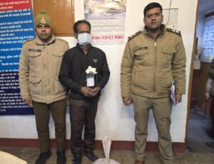 पुलिस टीम द्वारा चेकिंग के दौरान समाज कल्याण विभाग रोड पर अभियुक्त हेमू लाल पुत्र मोती लाल निवासी पंचायत घर कॉलोनी रामपुर रोड हल्द्वानी नैनीताल को 45 पाउच कच्ची शराब की तस्करी करते हुए गिरफ्तार किया गया।