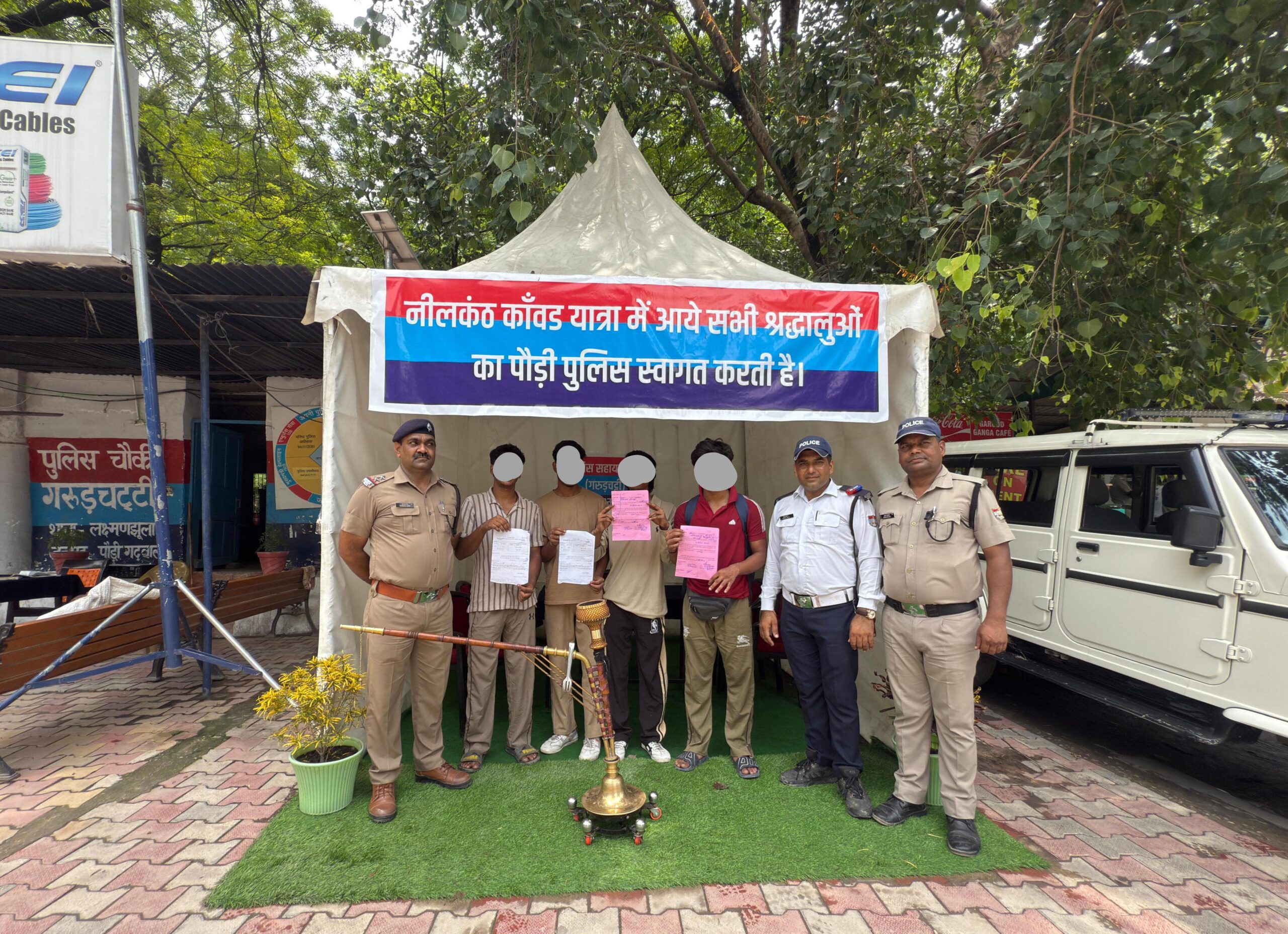 पौड़ी | वरिष्ठ पुलिस अधीक्षक पौड़ी लोकेश्वर सिंह के स्पष्ट निर्देशों के अनुपालन में थाना लक्ष्मणझूला पुलिस द्वारा लक्ष्मणझूला क्षेत्रान्तर्गत “ऑपरेशन लगाम” के तहत गंगा घाटों और सार्वजनिक स्थलों पर हुक्का फूंककर धूम्रपान करने वालों के विरुद्ध सख्त अभियान चलाया गया। गंगा किनारे/घाटों पर हुक्का पीकर मर्यादा,पवित्रता बनाए रखने हेतु फूलचट्टी, गरुड़चट्टी रामझूला जानकी झूला आदि स्थानों पर अलग-अलग पुलिस टीमों का गठन कर चेकिंग अभियान चलाया गया ।