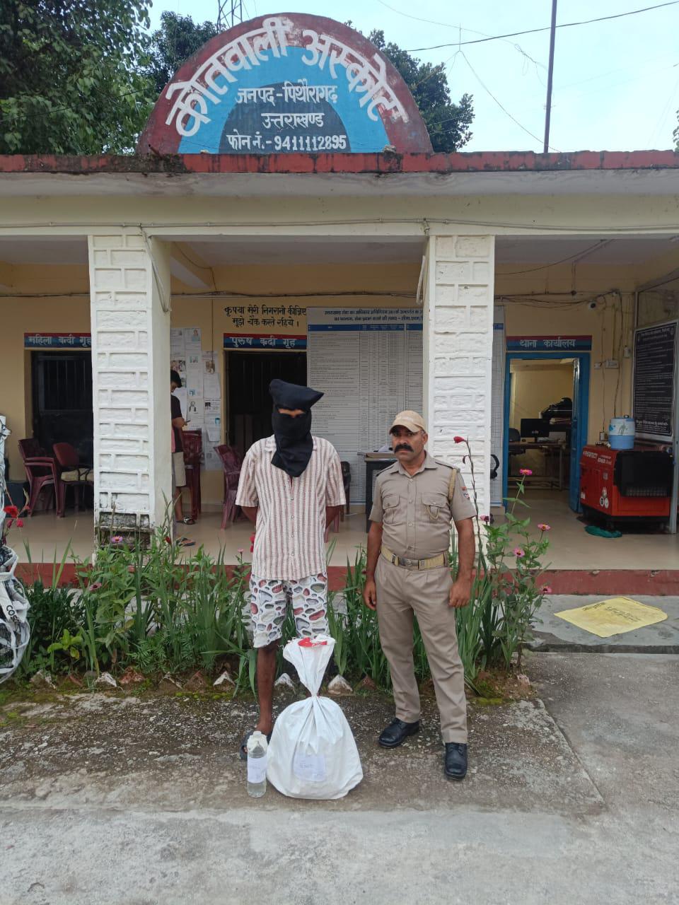 थानाध्यक्ष सुरेश कम्बोज के नेतृत्व में पुलिस टीम—का० गणेश तिवारी, का० कैलाश चन्द्र पांडे एवं चालक कविन्द्र सिंह द्वारा गुप्त सूचना के आधार पर अस्कोट क्षेत्र के बैड़ा से आगे, वन विभाग बैरियर के पास से अभियुक्त सुमित कुमार पुत्र हरीश राम निवासी धर्मशाला देवल, थाना अस्कोट, पिथौरागढ़ को 10 लीटर अवैध कच्ची शराब के साथ गिरफ्तार किया गया। अभियुक्त के विरुद्ध कोतवाली अस्कोट में आबकारी अधिनियम की धारा 60 के अंतर्गत अभियोग पंजीकृत किया गया