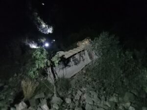 रुद्रप्रयाग | आज देर शाम रुद्रप्रयाग पुलिस कन्ट्रोल रूम स्थित 112 पर सूचना प्राप्त हुई कि कोतवाली रुद्रप्रयाग के अन्तर्गत रैंतोली पेट्रोल पंप के समीप एक वाहन अनियंत्रित होकर नीचे गहरी खाई में गिर गया है । सूचना मिलते ही चौकी जवाड़ी, कोतवाली रुद्रप्रयाग पुलिस और हाईवे पेट्रोल की टीमें तत्काल मौके पर पहुँचीं। घटना की संवेदनशीलता को देखते हुए SDRF और DDRF की टीमों को भी तत्काल सूचित कर मौके के लिए रवाना किया गया । अत्यधिक अंधेरा और विषम भौगोलिक परिस्थितियों के कारण शुरुआत में स्थिति का आकलन करने में कठिनाई आई । मौके पर मौजूद पुलिस बल द्वारा किए गए सर्च ऑपरेशन के दौरान एक व्यक्ति जो कि अचेत अवस्था में है को बरामद कर पहाड़ी से ऊपर मुख्य मार्ग तक लाने का कार्य किया जा रहा है। अंधेरे के बावजूद रेस्क्यू ऑपरेशन पूरी तत्परता से जारी है । अन्य संभावित घायलों या जनहानि के सम्बन्ध में सर्च अभियान चलाया जा रहा है। इस दुर्घटना में वाहन संख्या UK 14 CA 3347 ट्रक दुर्घटनाग्रस्त होकर खाई में नदी किनारे जा गिरा है