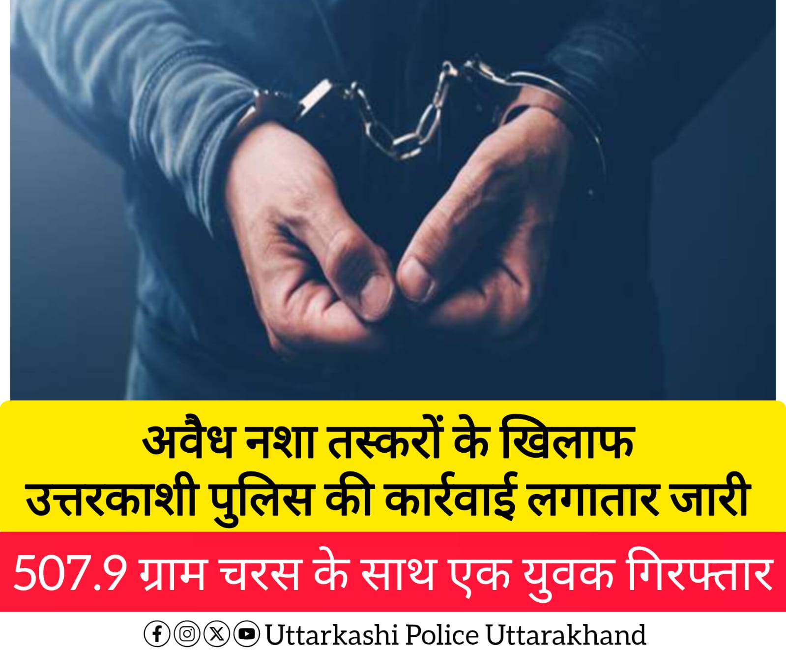 उत्तरकाशी | कमलेश उपाध्याय पुलिस अधीक्षक उत्तरकाशी के दिशा-निर्देशन में ड्रग्स फ्री देवभूमि मिशन एवं नशामुक्त अभियान के तहत उत्तरकाशी पुलिस की अवैध नशे के सौदागरों के खिलाफ कार्रवाई लगातार जारी है । पुरोला पुलिस की टीम द्वारा अवैध अफीम की खेती करने के मामले में एक वांछित अभियुक्त को गिरफ्तार किया गया है । मई 2025 में थाना पुरोला क्षेत्र के डामटा सिंगुणी गांव के चिंणाखेत तोक में कुछ लोगों द्वारा *बिना लाइसेंस के अफीम की अवैध खेती करने पर थाना पुरोला पर 8/18 NDPS Act में मुकदमा दर्ज किया गया था । दौराने विवेचना/साक्ष्यों के आधार पर शूरवीर सिंह राणा नाम का एक व्यक्ति प्रकाश में आया, जिसकी गिरफ्तारी हेतु पुलिस टीम द्वारा सम्भावित स्थानों पर दबिश दी जा रही थी तथा मा0 न्यायालय द्वारा भी NBW जारी किया गया था । पुरोला पुलिस टीम द्वारा गहन सुरागरसी-पतारसी करते हुये मामले में वांछित चल रहे *अभियुक्त शूरवीर सिंह राणा को कल 7 जनवरी 2026 को नौगांव-बडकोट रोड़ से गिरफ्तार* किया गया है। अग्रिम विधिक कार्यवाही जारी है |